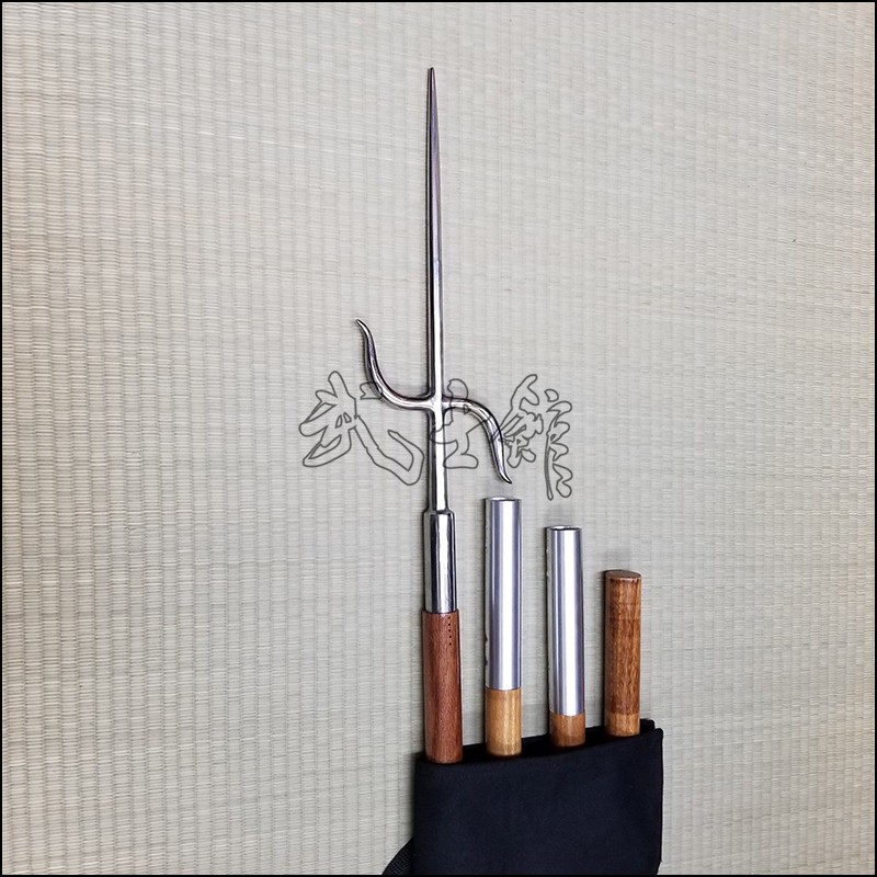This 4 section Bo/Nunti Combination in Jatoba wood is a uniquely designed Bo developed by Bushikan Budo specially for traveling. The unique design allows the martial arts practitioner to have a training Bo or a full size Nunti with an easy switch of a unit section. The practitioner will be able to disassemble the Bo/Nunti Combination for convenient transport in a suitcase or weapons carrier.