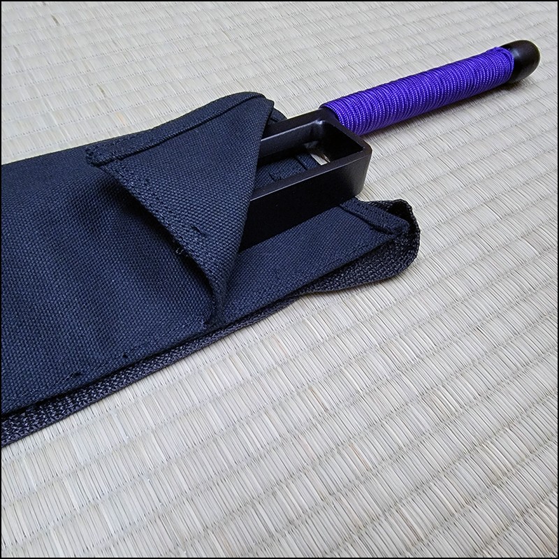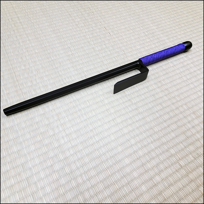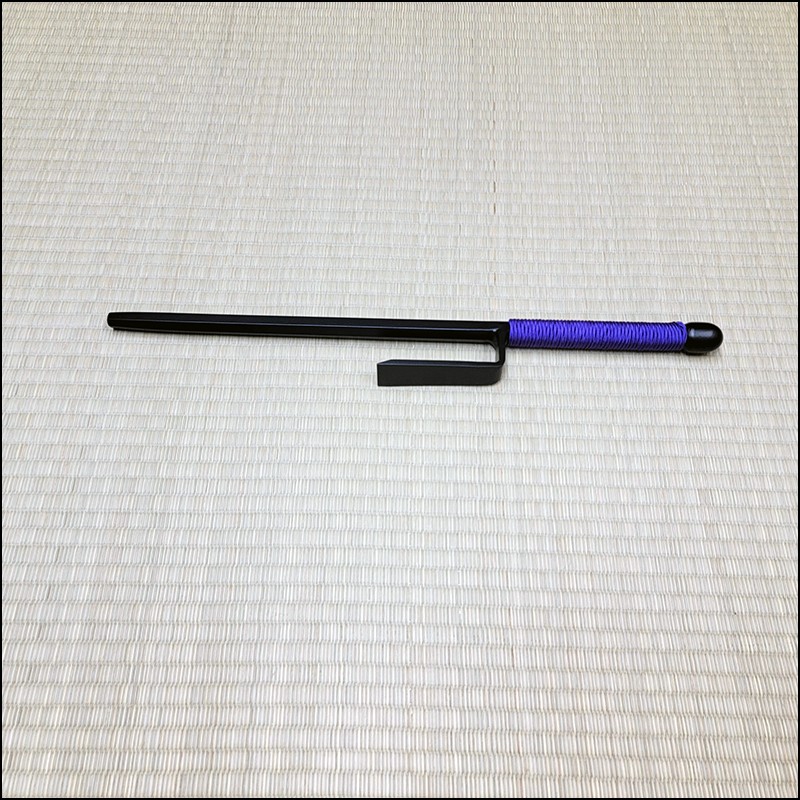 Traditional Japanese Jutte or Jitte specially designed for contact training. This Jutte model is characterized by having a hexagonal blade (monouchi) and rounded back (tsukagashira) made from wrought iron with black powder coating finish and purple cord.