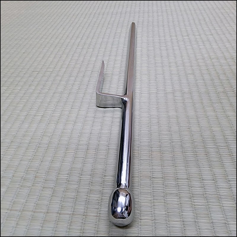 The Jutte or Jitte is used in the Japanese martial arts in a similar way to the Sai. However, while the Sai is traditionally used in pairs, the Jutte is used as a single weapon. In ancient Japan, the Jutte was used to block sword or knife strikes or to hit opponents with the shaft. The Jutte is many times called the “sword breaker” due that if it is used correctly it will not only be able to trap a sword but also to be able to break it.