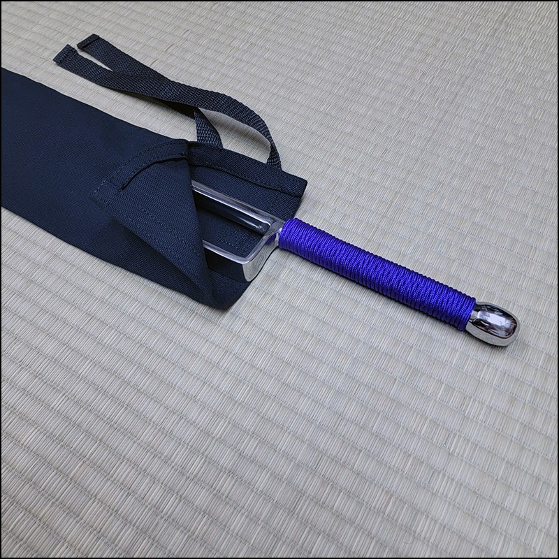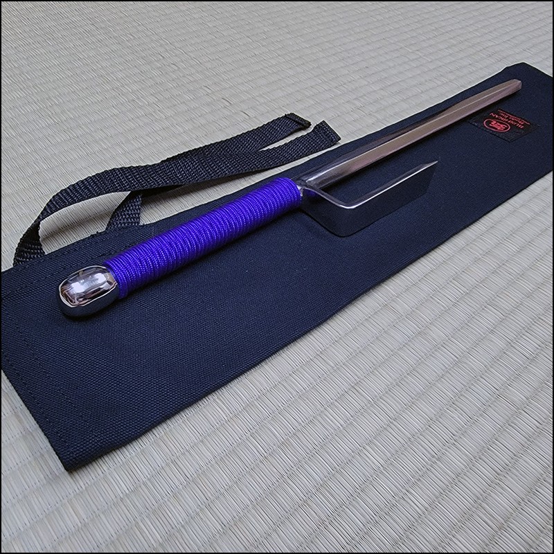 Traditional Japanese Jutte or Jitte specially designed for contact training. This Jutte model is characterized by having a hexagonal blade (monouchi) and rounded back (tsukagashira) made from wrought iron with polished finish and purple cord.