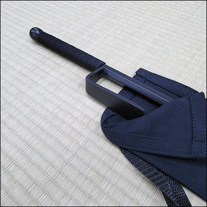 Traditional Japanese Jutte or Jitte specially designed for contact training. This Jutte model is characterized by having a hexagonal blade (monouchi) and pointy back (tsukagashira) made from wrought iron with black powder coating finish and black cord.
