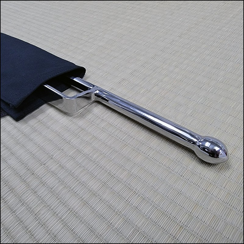 Traditional Japanese Jutte or Jitte specially designed for contact training. This Jutte model is characterized by having a hexagonal blade (monouchi) and pointy back (tsukagashira) made from stainless steel with polished finish and no cord.