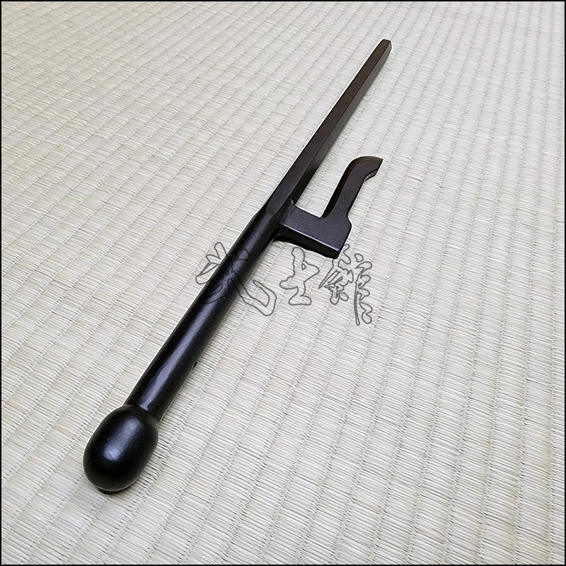 Jutte or Jitte – This single weapon has been especially designed for the proper practice within the Ikkaku Ryu Juttejutsu ryuha. This Jutte model is characterized by having a hexagonal blade (monouchi) and round back (tsukagashira) made from wrought iron with black powder coating finish and no cord.