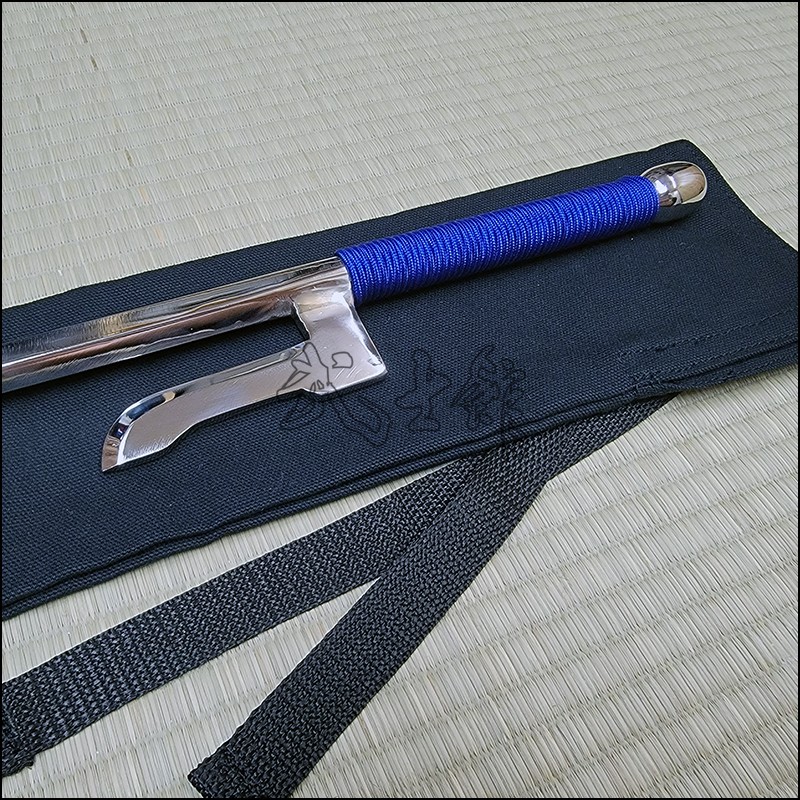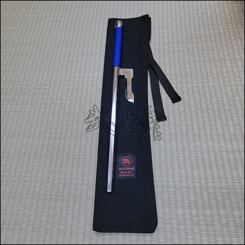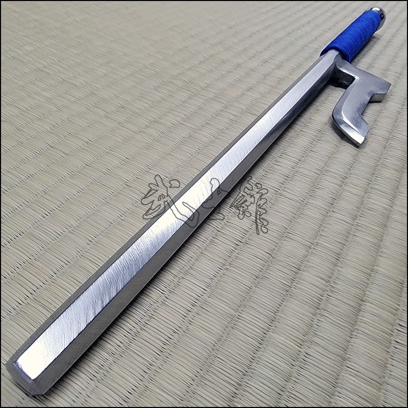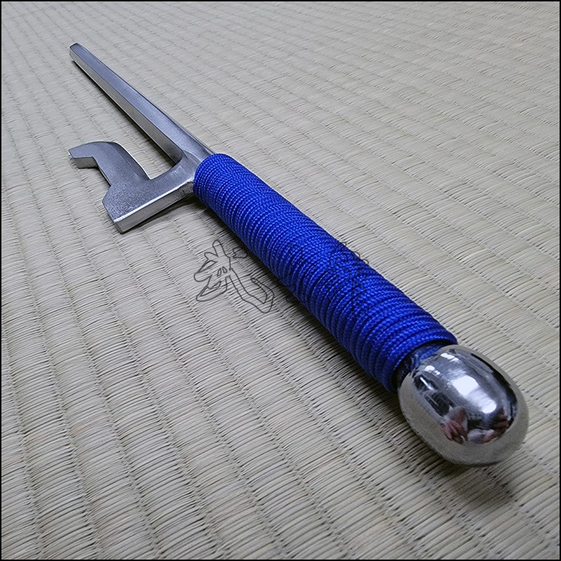 Jutte or Jitte – This single weapon has been especially designed for the proper practice within the Ikkaku Ryu Juttejutsu ryuha. This Jutte model is characterized by having a hexagonal blade (monouchi) and round back (tsukagashira) made from stainless steel with polished finish and blue cord.