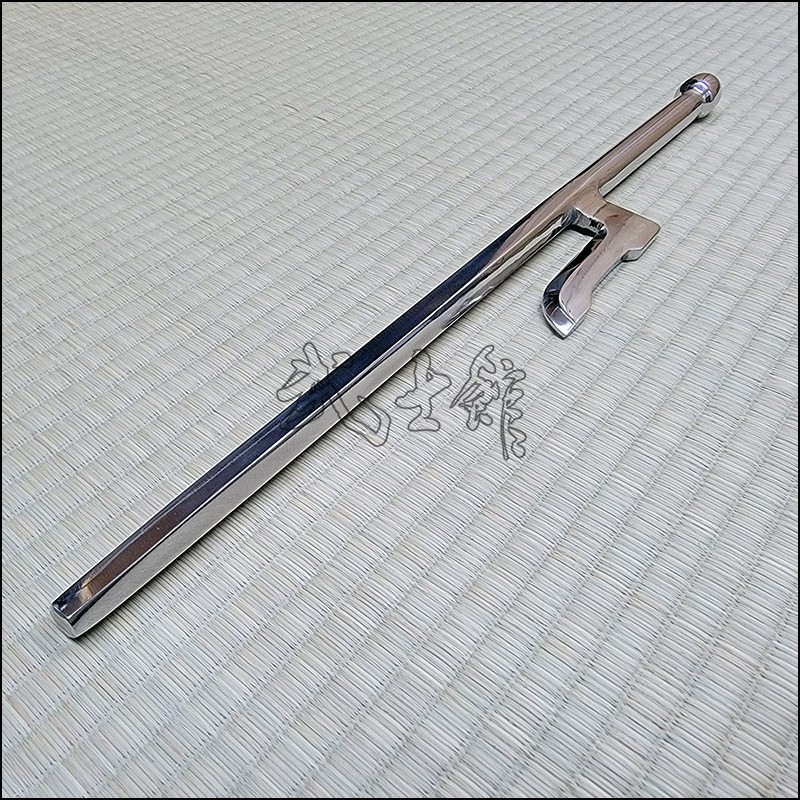 Jutte or Jitte – This single weapon has been especially designed for the proper practice within the Ikkaku Ryu Juttejutsu ryuha. This Jutte model is characterized by having a hexagonal blade (monouchi) and round back (tsukagashira) made from stainless steel with polished finish and no cord.