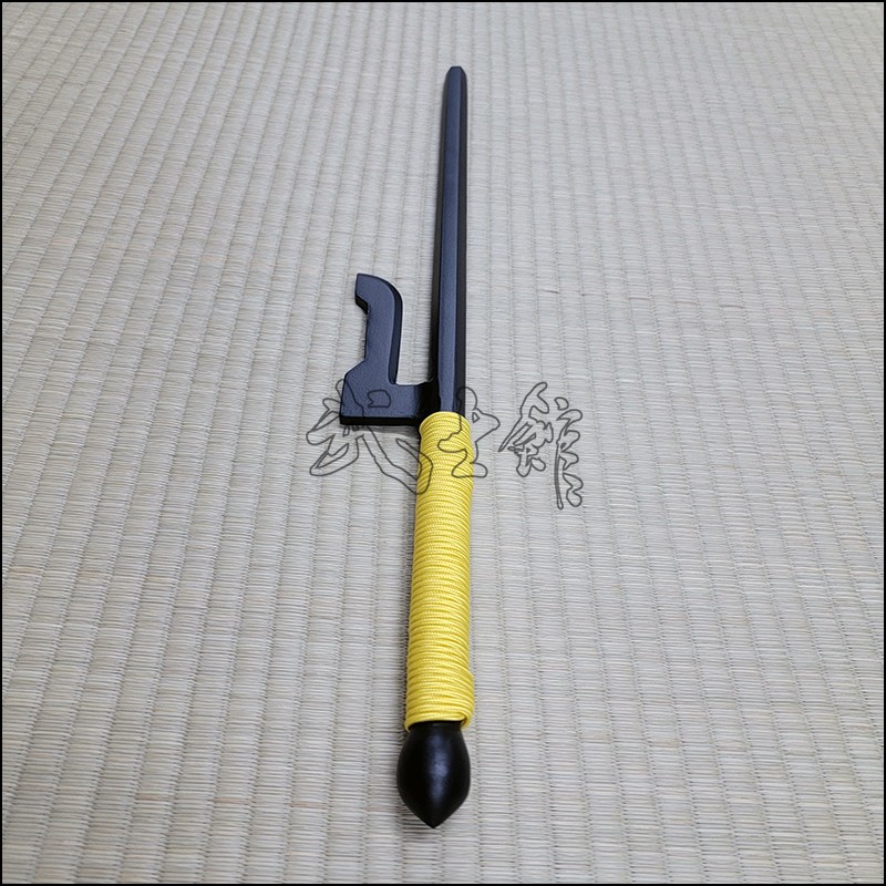 Jutte or Jitte – This single weapon has been especially designed for the proper practice within the Ikkaku Ryu Juttejutsu ryuha. This Jutte model is characterized by having a hexagonal blade (monouchi) and pointy back (tsukagashira) made from wrought iron with black powder coating finish and yellowcord.
