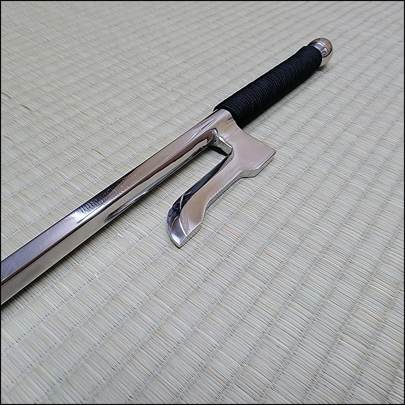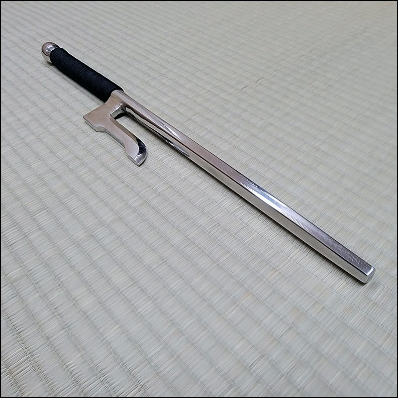 Jutte or Jitte – This single weapon has been especially designed for the proper practice within the Ikkaku Ryu Juttejutsu ryuha. This Jutte model is characterized by having a hexagonal blade (monouchi) and pointy back (tsukagashira) made from wrought iron with polished finish and black cord.