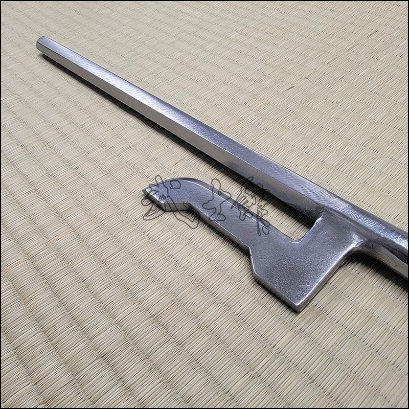 Jutte or Jitte – This single weapon has been especially designed for the proper practice within the Ikkaku Ryu Juttejutsu ryuha. This Jutte model is characterized by having a hexagonal blade (monouchi) and pointy back (tsukagashira) made from wrought iron with polished finish and no cord.