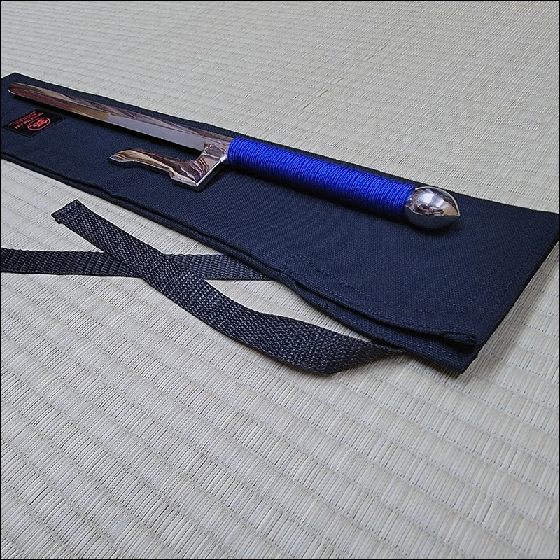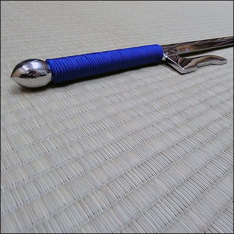 Jutte or Jitte – This single weapon has been especially designed for the proper practice within the Ikkaku Ryu Juttejutsu ryuha. This Jutte model is characterized by having a hexagonal blade (monouchi) and pointy back (tsukagashira) made from stainless steel with polished finish and blue cord.