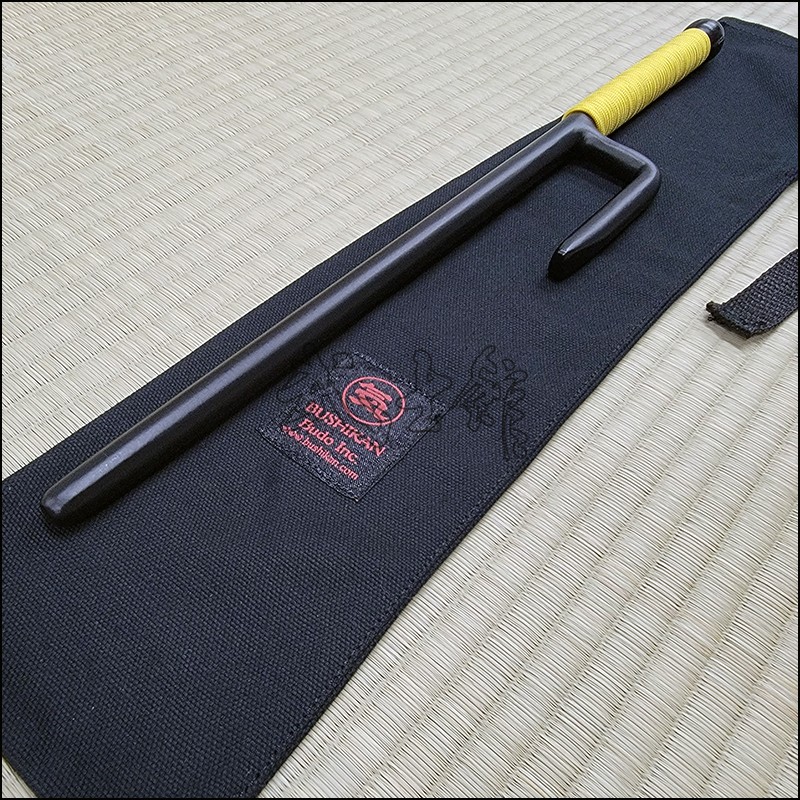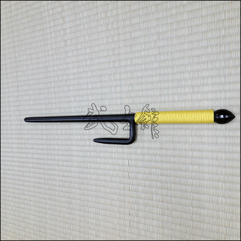 Jutte or Jitte – This single weapon has been especially designed for the practice against a bokken. This Jutte model is characterized by having a round blade (monouchi), round guard (yoku) and pointy back (tsukagashira) made from wrought iron with black powder coating finish and yellow cord. The round monouchi and round yoku design is to minimize the damage to a bokken during contact practice.