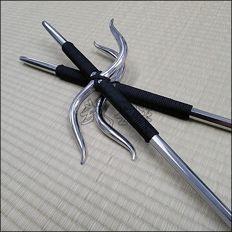 Manji Sai 1 – Bushikan traditional kobudo Manji Sai with polished finish and black cord made from stainless steel.