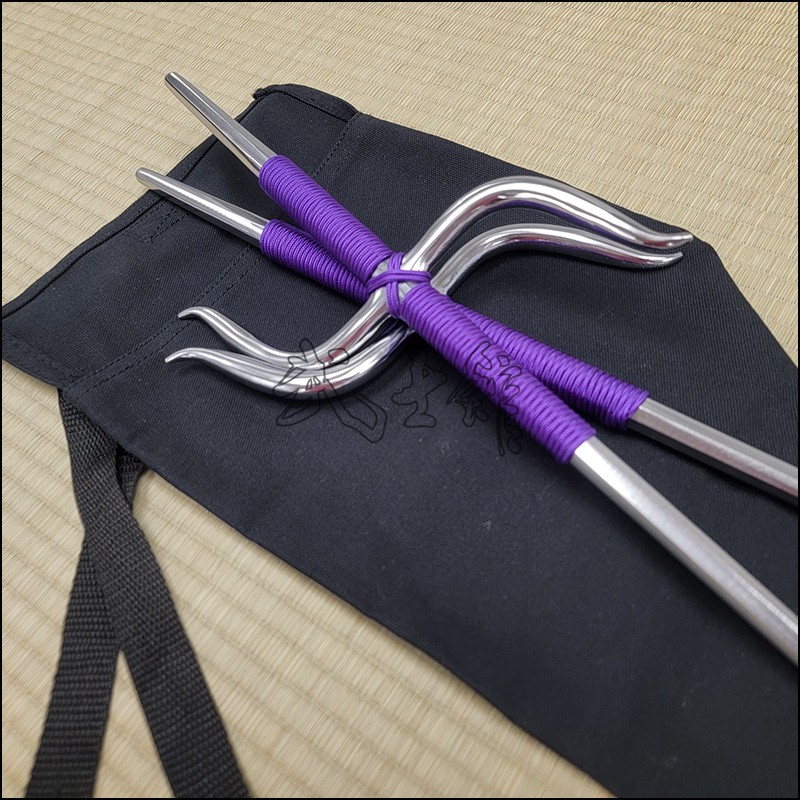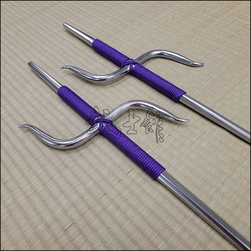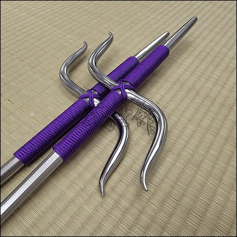Manji Sai 1 – Bushikan traditional kobudo Manji Sai with polished finish and purple cord made from stainless steel.