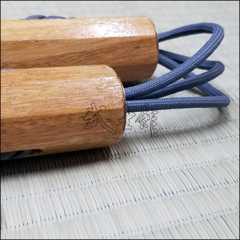 Nunchaku – Traditional Kobudo weapon made from Cumaru wood designed and handcrafted for contact training. Photos show sample of grey cord.