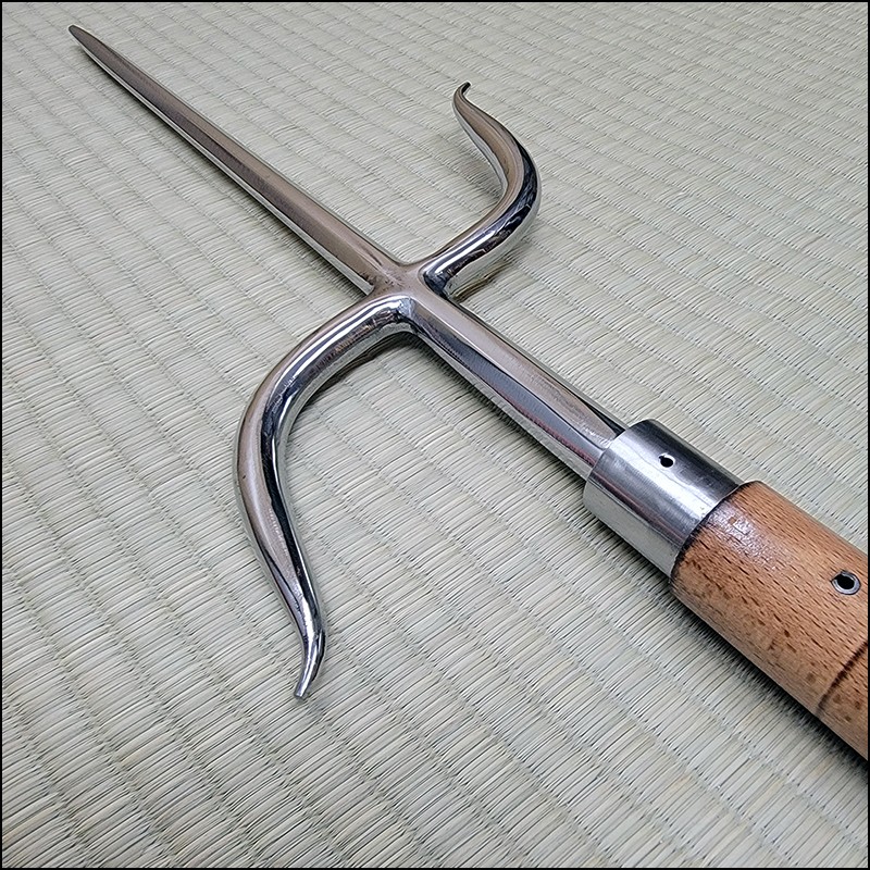 Nunti or Nunti Bo is a very unique traditional kobudo weapon that is a combination that resembles a Manji Sai mounted on a Bo. The wood section is made from Beech and the Manji section is made from stainless steel with polished finish. The standard total length is 81″ (inches).