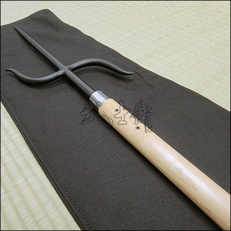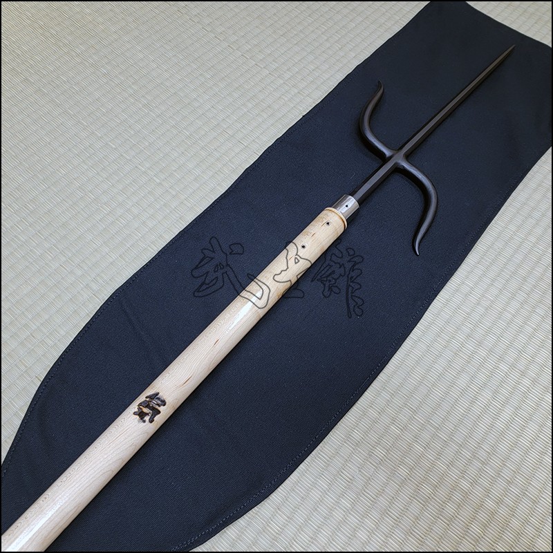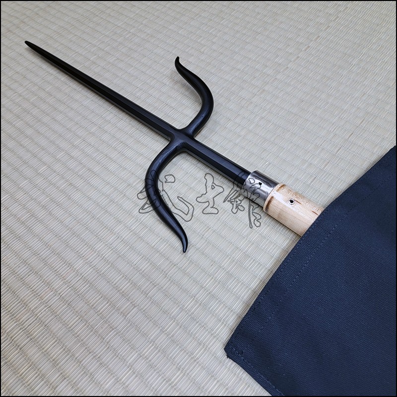 Nunti or Nunti Bo is a very unique traditional Kobudo weapon that is a combination that resembles a Manji Sai mounted on a Bo. The wood section is made from Maple and the Manji section is made from wrought iron with black powder coating finish. The standard total length is 81″ (inches).