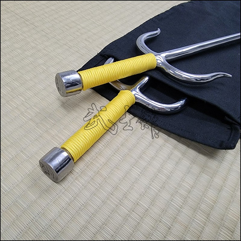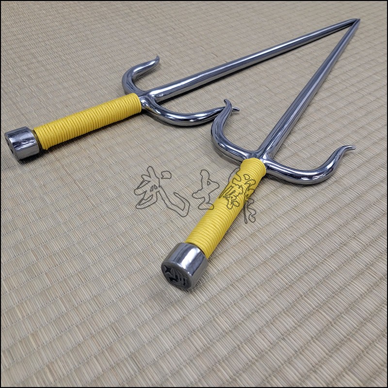 Sai 2 – Bushikan traditional kobudo Sai with polished finish and yellow cord made from stainless steel. This Sai model is characterized by having an rounded blade (monouchi) and flat back (tsukagashira).