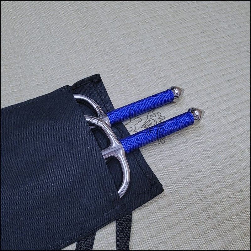 Sai 3 – Special traditional kobudo Sai with polished finish and blue cord made from stainless steel. This Sai model is characterized by having a rounded blade (monouchi) and pointy back (tsukagashira).