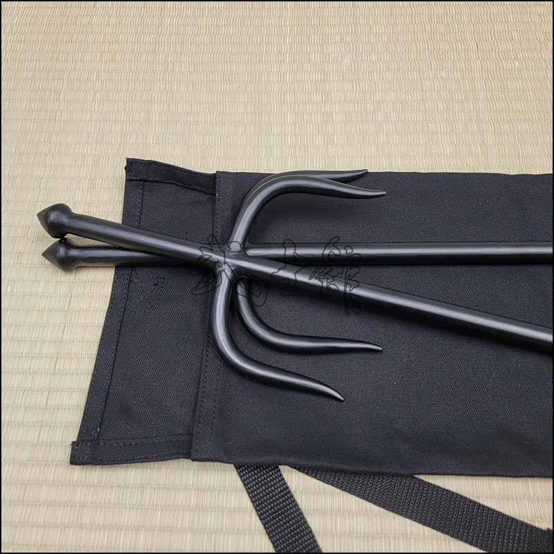 Sai 4 – Sai model used by Oyata Kobudo practitioners with black powder coating finish and no cord made from wrought iron. This Sai model is characterized by having a round blade (monouchi) and pointy back (tsukagashira).