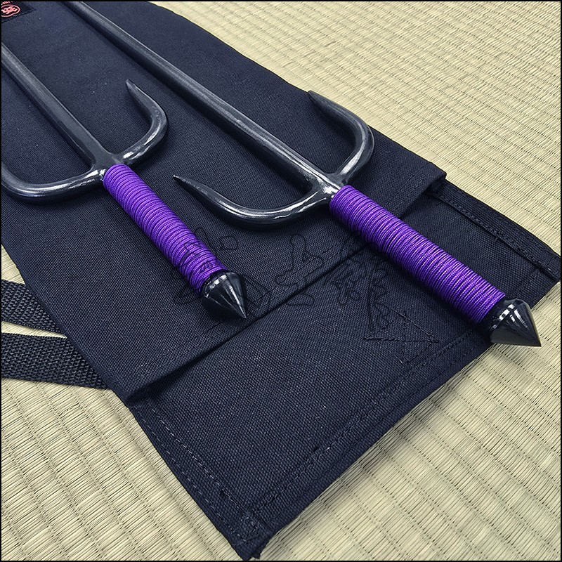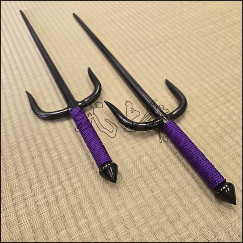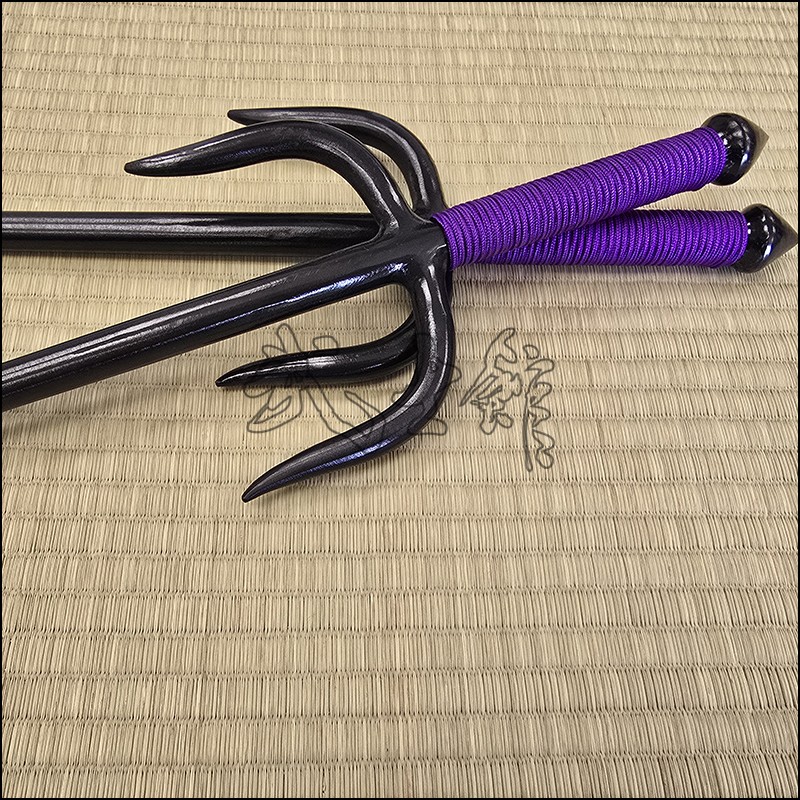 Sai 4 – Sai model used by Oyata Kobudo practitioners with special processed natural finish and purple cord made from wrought iron. This Sai model is characterized by having a round blade (monouchi) and pointy back (tsukagashira).