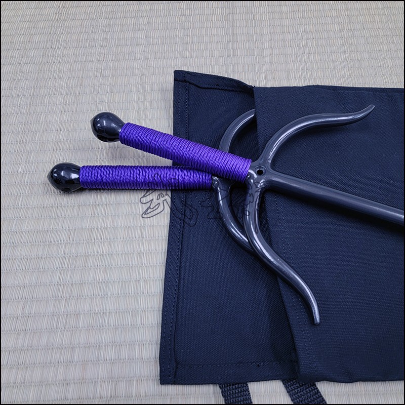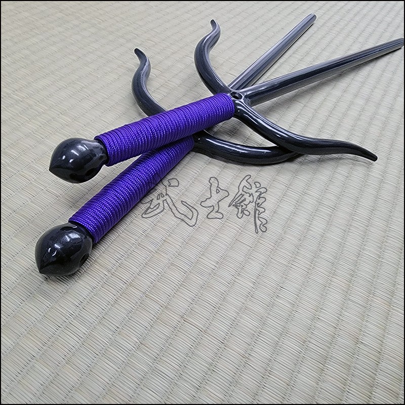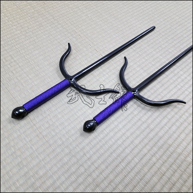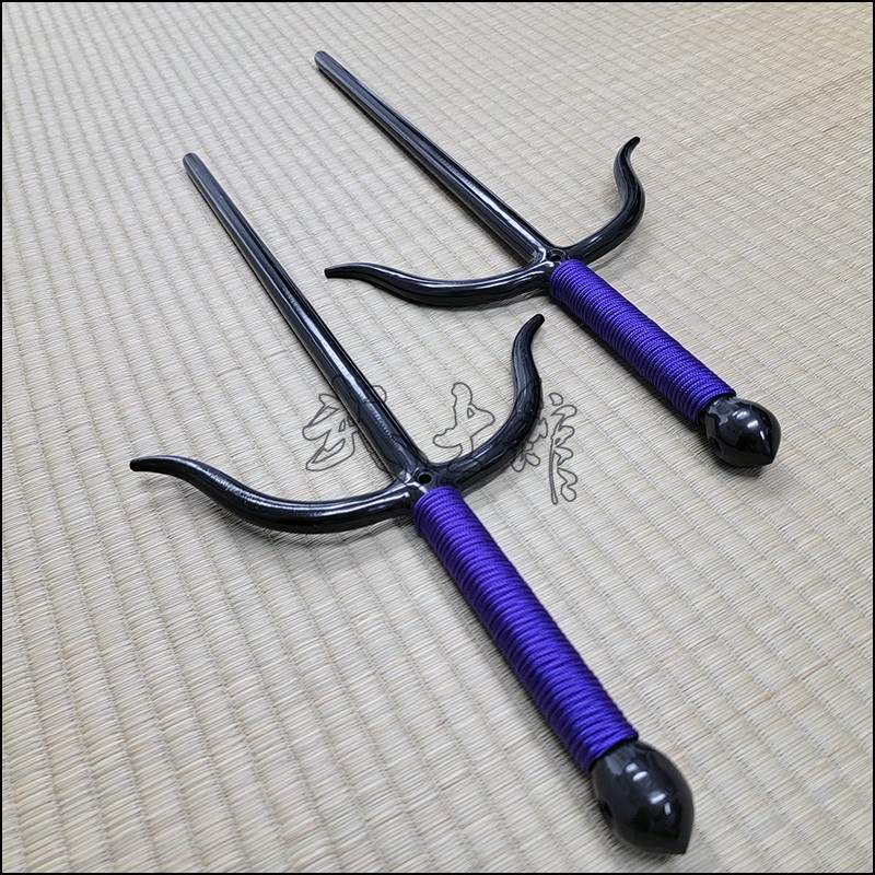 Sai 7 – Bushikan Chinese Sai (Tai) specially crafted for the Won Hop Loong Chuan martial arts organization with natural finish and purple cord made from wrought iron. This Sai model is characterized by its very special guards (yoku), rounded blade (monouchi) and pointed back (tsukagashira). Sai-7 is sold in sets of 2 (pair of Sai).